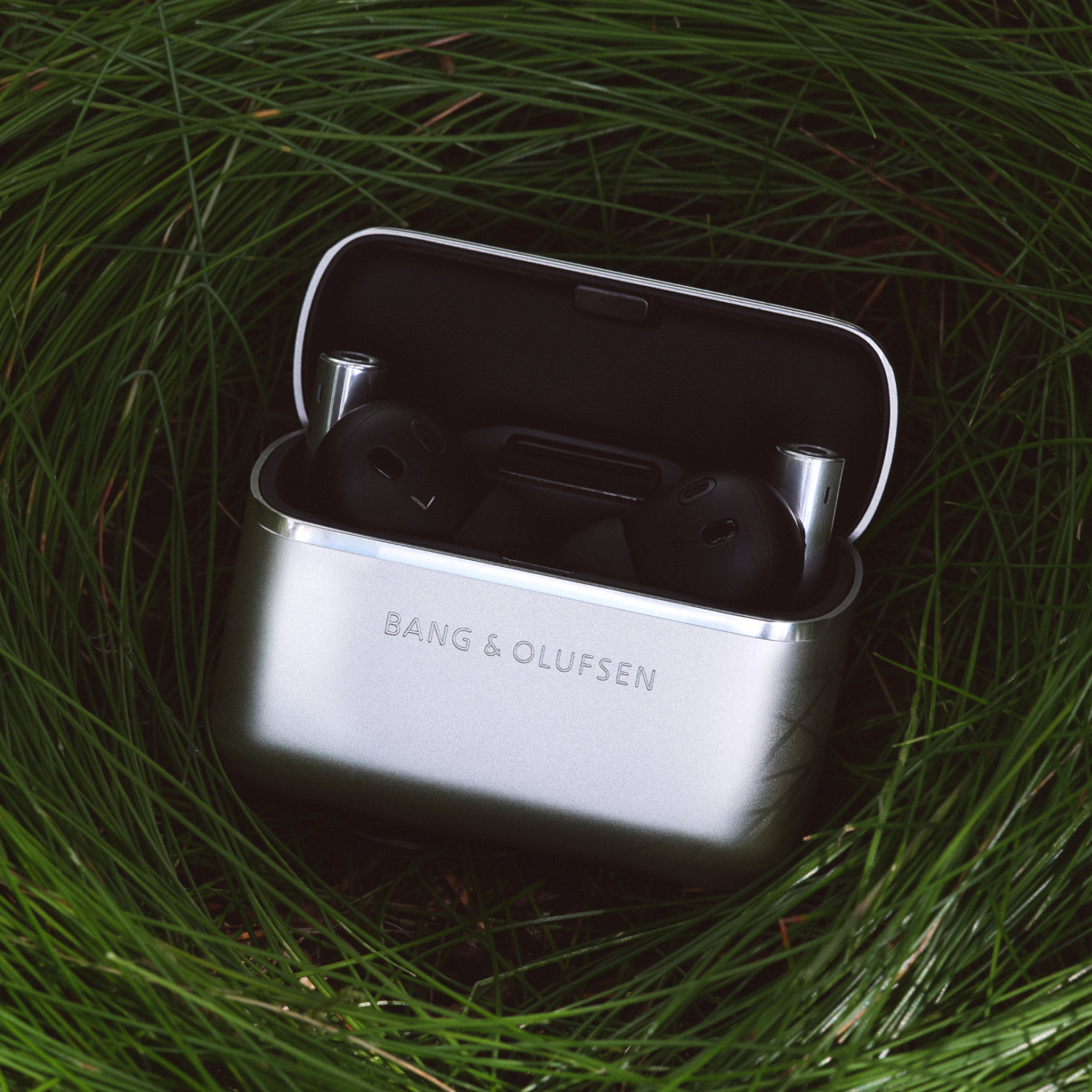 Beo Grace的外觀是一場「耳機作為雕塑」的完整思考。鋁製耳機柄向經典A8致敬,透過微型化技術將過往的金屬語言帶入無線世代。每一對耳機都採用拋光鋁材打造,自然鋁色靈感取自銀器工藝,使科技與飾品之間取得優雅平衡。搭配以珠光噴砂鋁材製成的充電盒,線條俐落、結構無縫,連指示燈與轉軸都隱藏其中,開闔之間具備一種極度純粹的觸覺體驗。