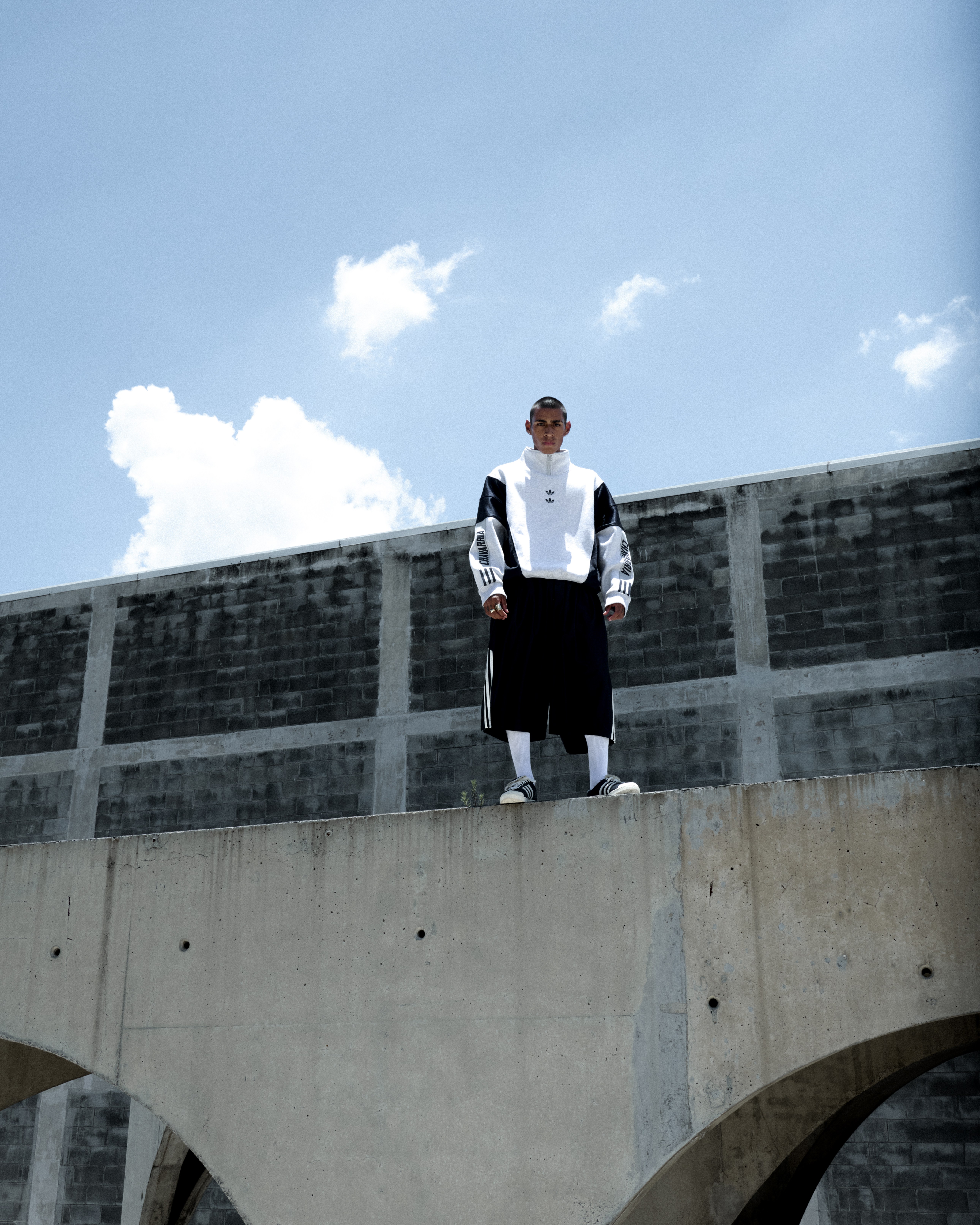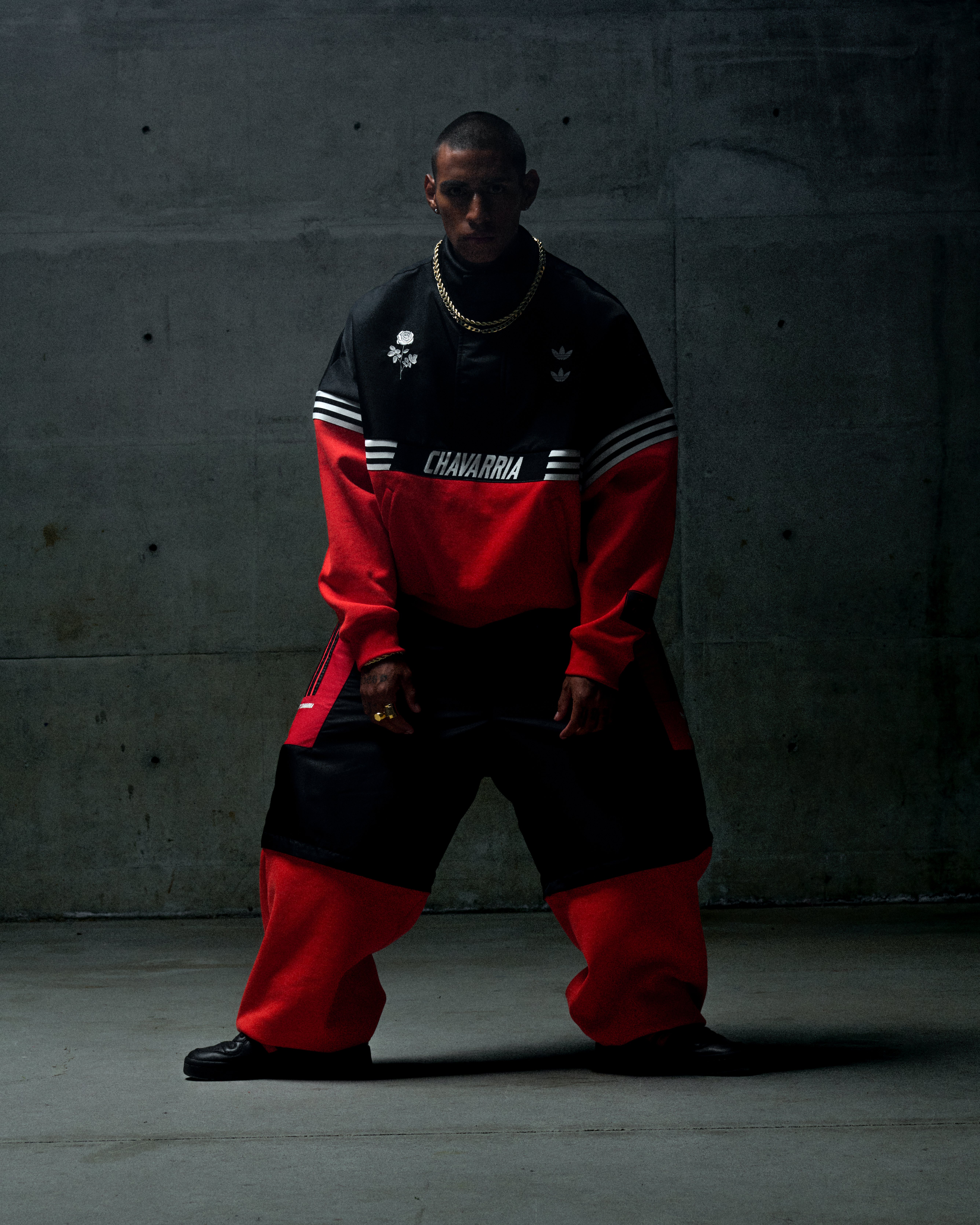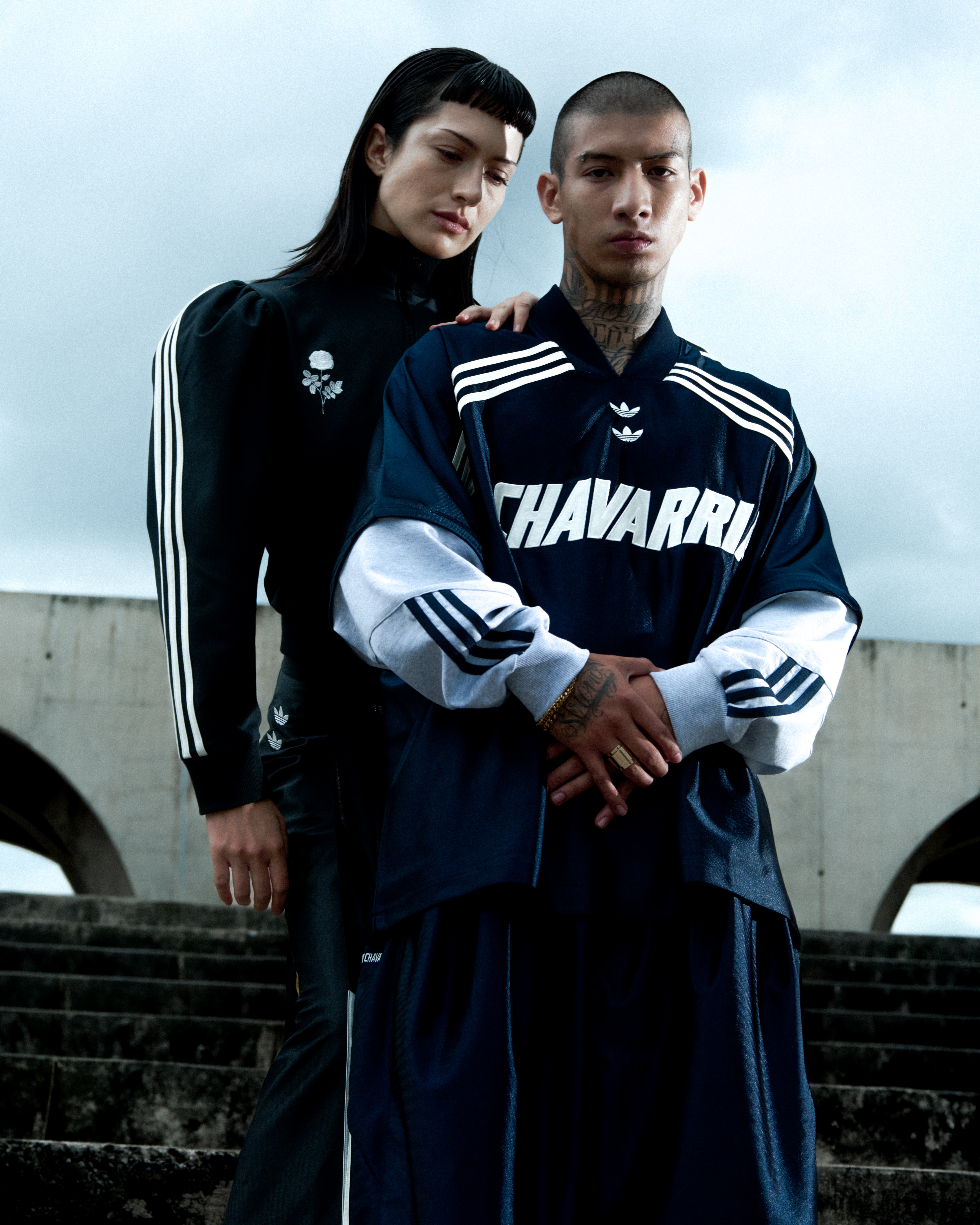 本季設計強調Oversized比例、層次材質與高密度工藝細節。重磅抓絨的高領上衣以層疊刺繡與厚實字樣強化視覺張力;融入奇卡諾文化視角的衛衣以刺繡與國旗貼布呈現身份意識;半拉鍊上衣以抓絨與緞面拼接並搭配玫瑰刺繡,讓柔性與力量在同一件單品中對話;可拆卸長褲則以多重紋理與可轉換結構呈現 Chavarria 一貫的率性美學。整個系列從材質到輪廓皆延續設計師過往對社群與真實情感的重視,並透過adidas Originals的運動底蘊強化其文化敘事。