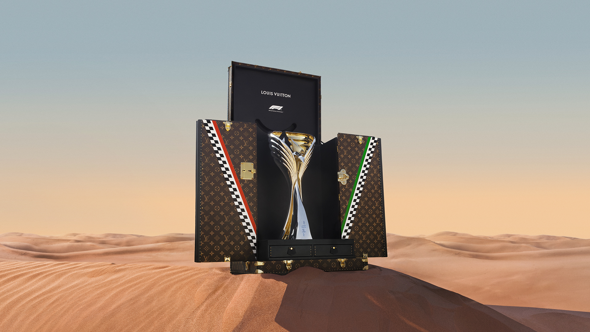 這批獎盃由Asnières工坊打造,自2025年起Louis Vuitton成為F1官方合作夥伴後,首次完整集結。工匠的細膩與F1工程師在車庫裡的精準相互呼應,兩者追求的都是極致標準與細節完美,也正好呼應品牌口號:Victory Travels with Louis Vuitton。
