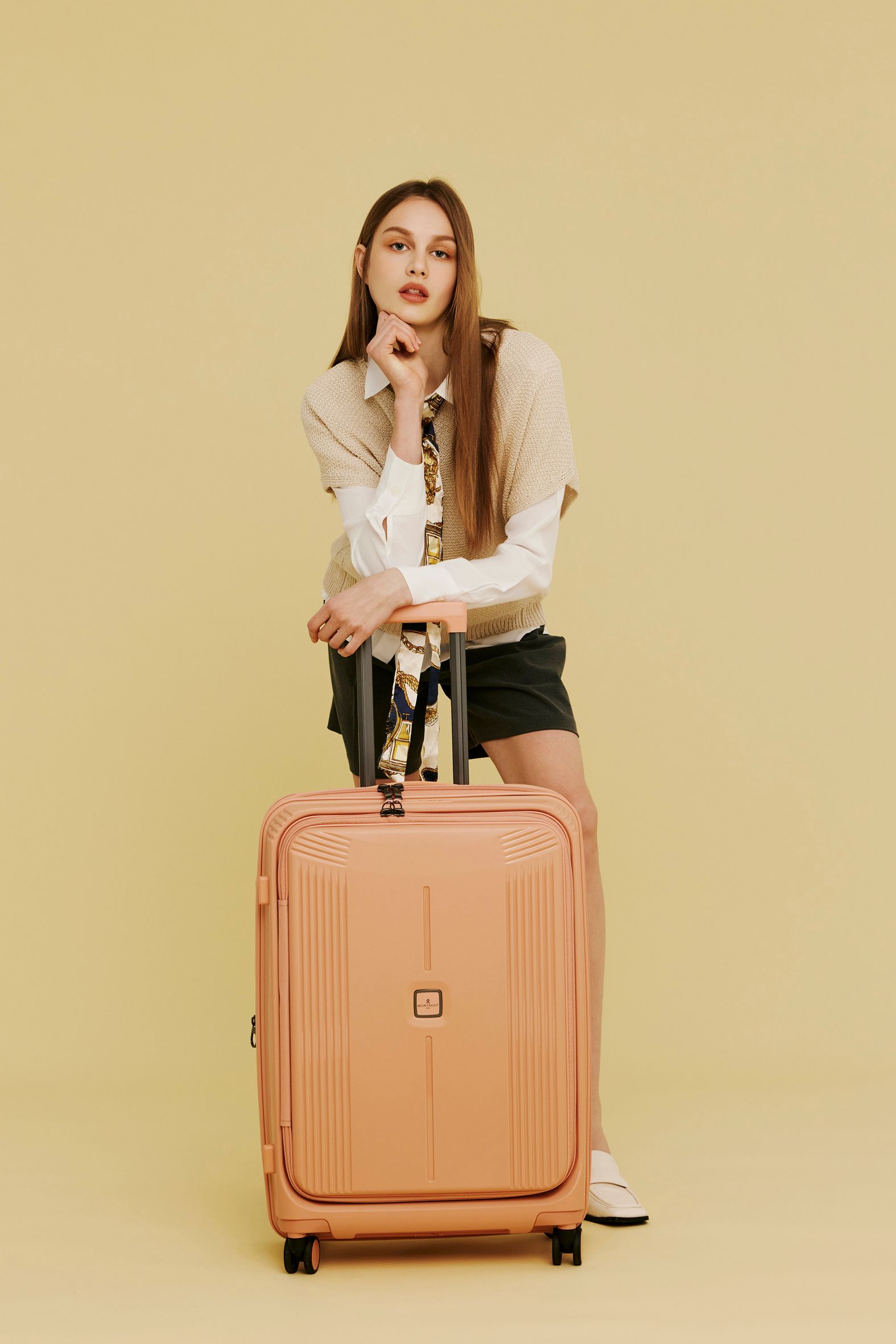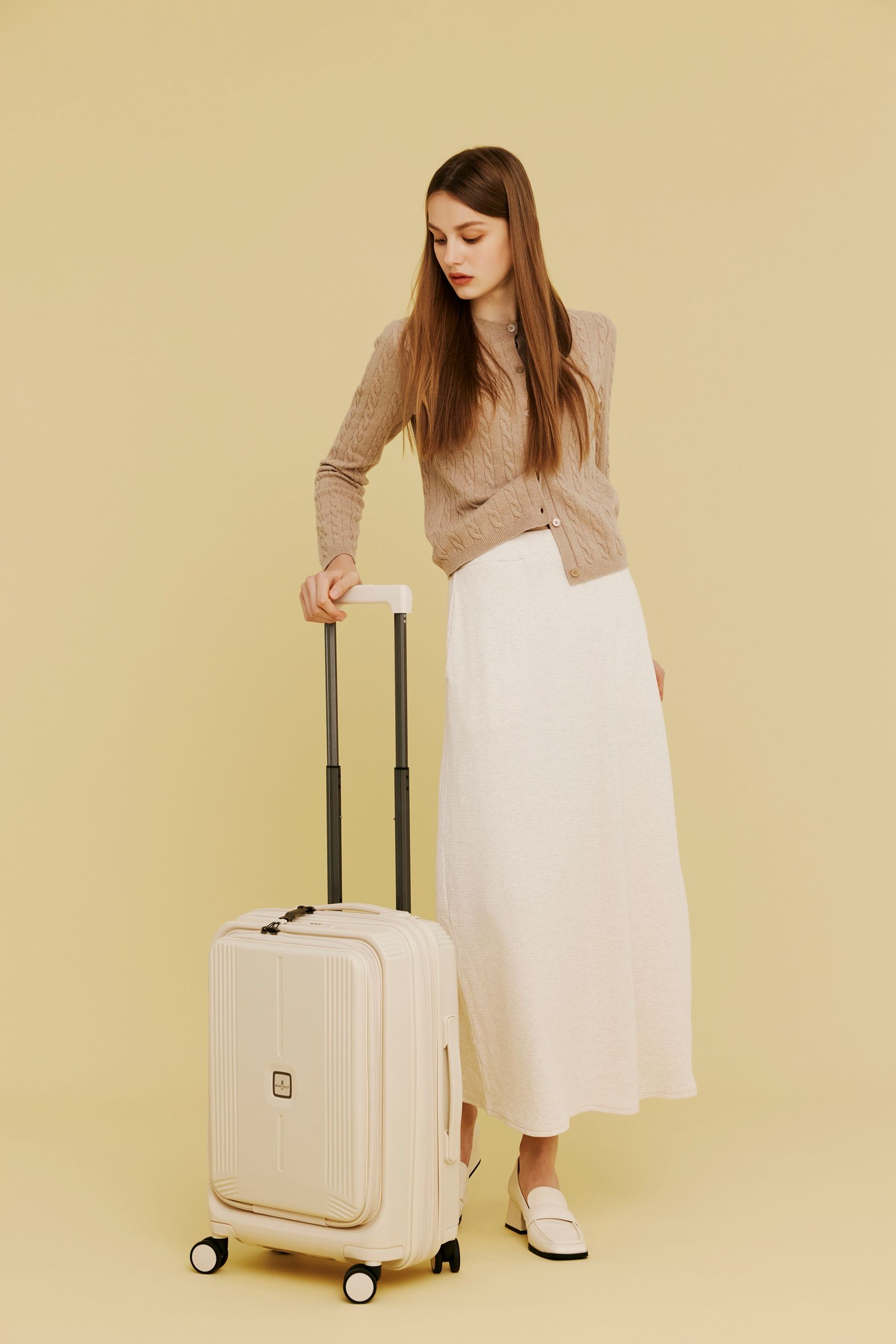 在細節配置上,靜音萬向輪確保推行順暢,可調式拉桿符合人體工學,即使長時間移動也能維持舒適姿態。外型延續品牌一貫的法式俐落美學,以簡潔線條與柔和色調勾勒低調質感,無論商務差旅或假期出遊,都能自然融入整體造型。