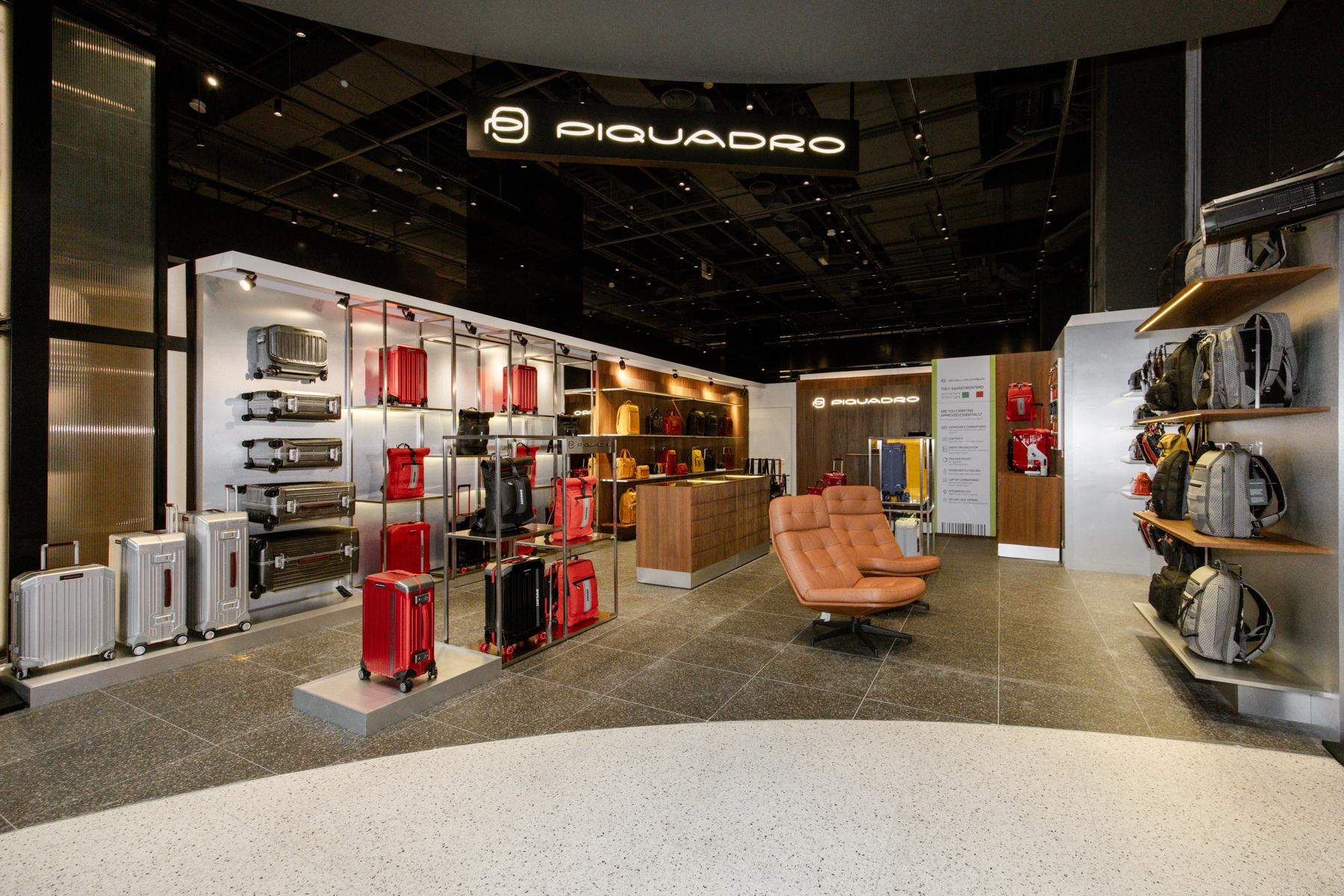 義大利頂級皮件Piquadro於誠品生活新店打造全台最大旗艦店,店內完整展示全系列商品,並推出獨家客製化服務,現場可刻印大寫英文字母縮寫,讓細節更具風格層次。並以靜謐的空間氛圍,讓到訪者能細細感受義大利高級皮革的卓越細節、創新精神與經典優雅。