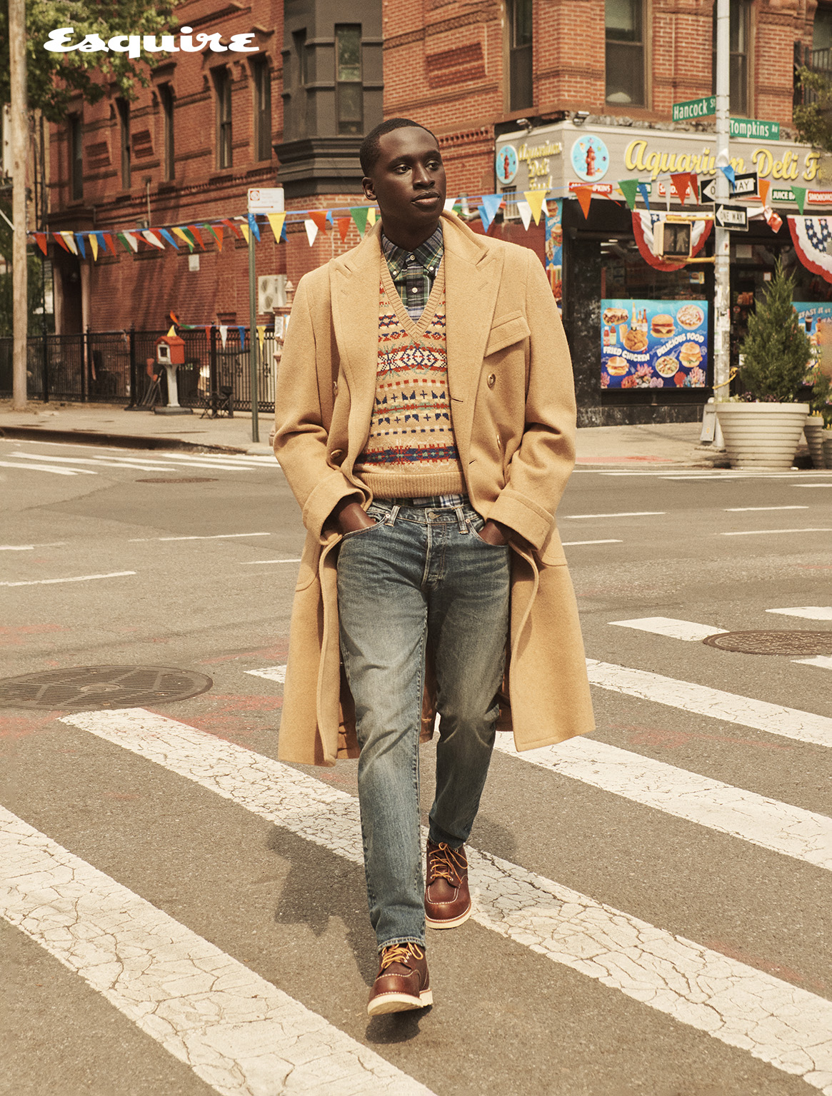 駝毛大衣、針織背心、格紋襯衫 all by Polo Ralph Lauren;莫卡辛靴 by Red Wing Heritage