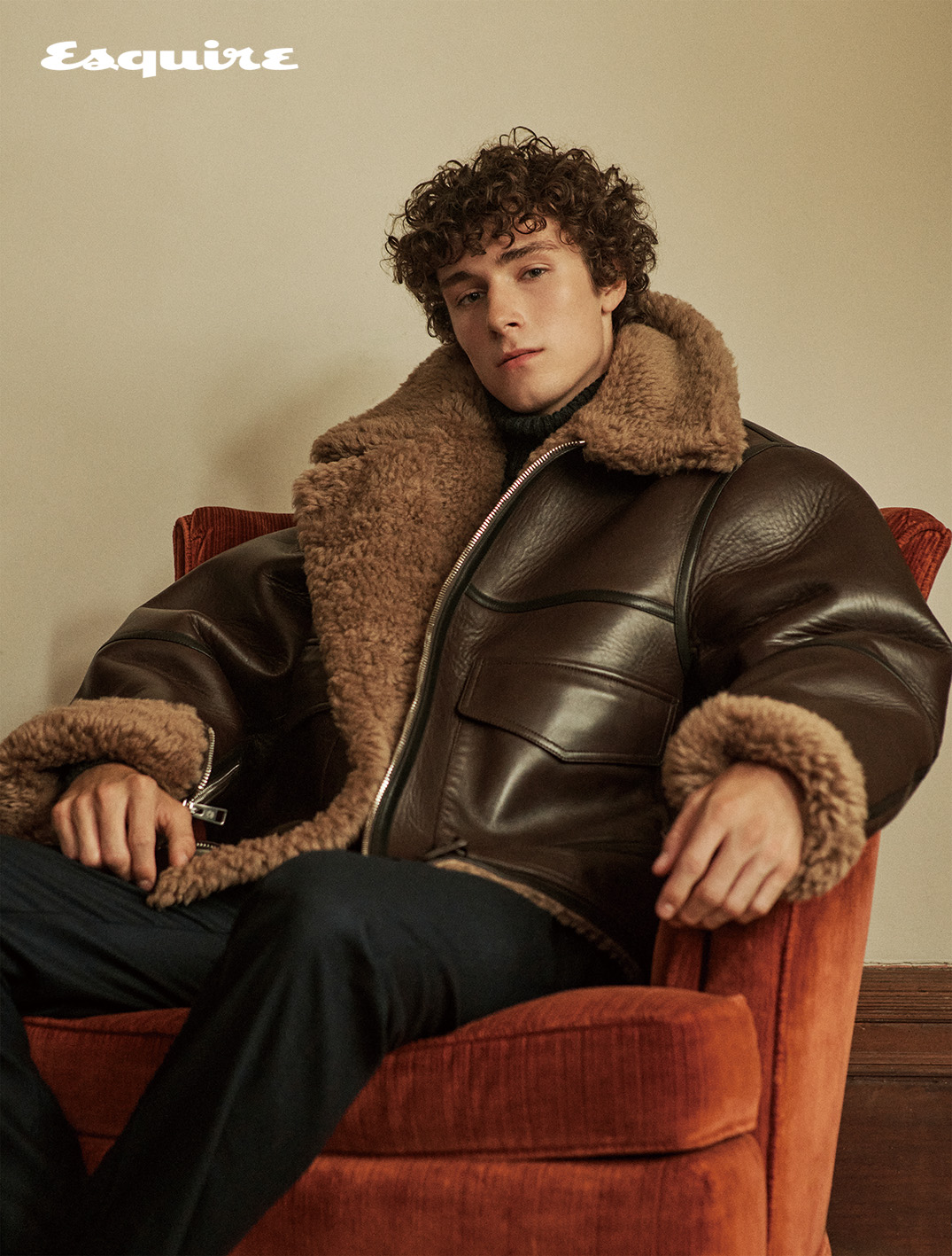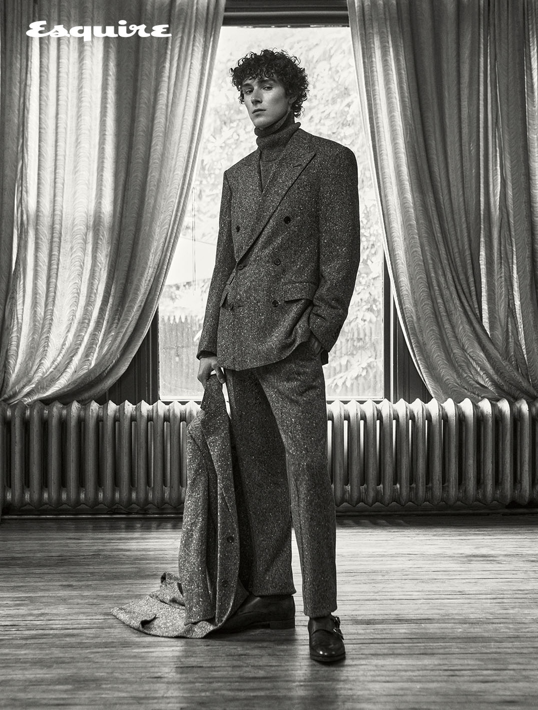 外套、西裝外套、高領毛衣、長褲by dunhill;皮鞋by John Lobb