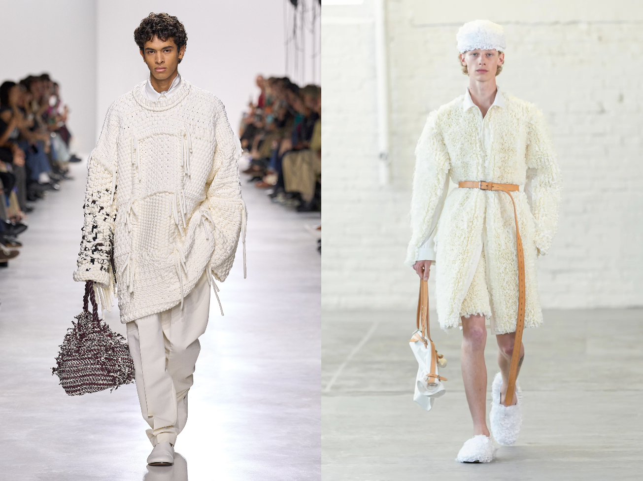 同時,AURALEE、Hermès與Jacquemus進一步將白色化為「回歸本質」的工具,透過精準剪裁與清晰輪廓,讓每一道線條、每一次布料折疊都毫不掩飾地被看見。當色彩退居其次,視線自然轉向工藝與設計本身,時尚的焦點也從炫目轉向細節,所呈現的不只是極簡,而是一種成熟且有溫度的選擇,讓比例、結構與材質在低調之中,自然構築出細膩而耐看的美感。