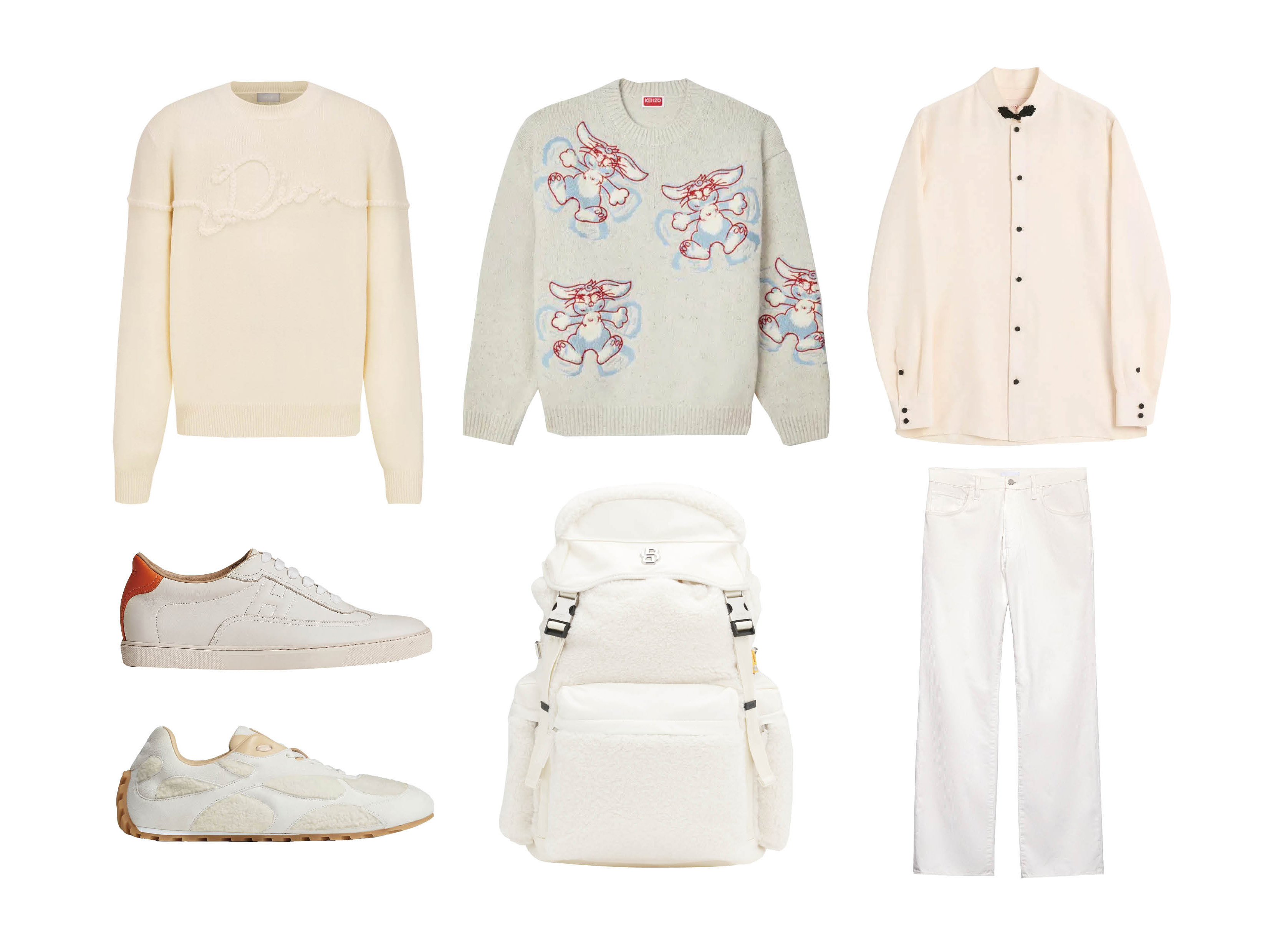 Dior Ribbon白色羊毛針織毛衣 by Dior_$62,000、刺繡羊毛套頭衫_$30,900 by Kenzo、真絲襯衫_價格店洽 by Valentino