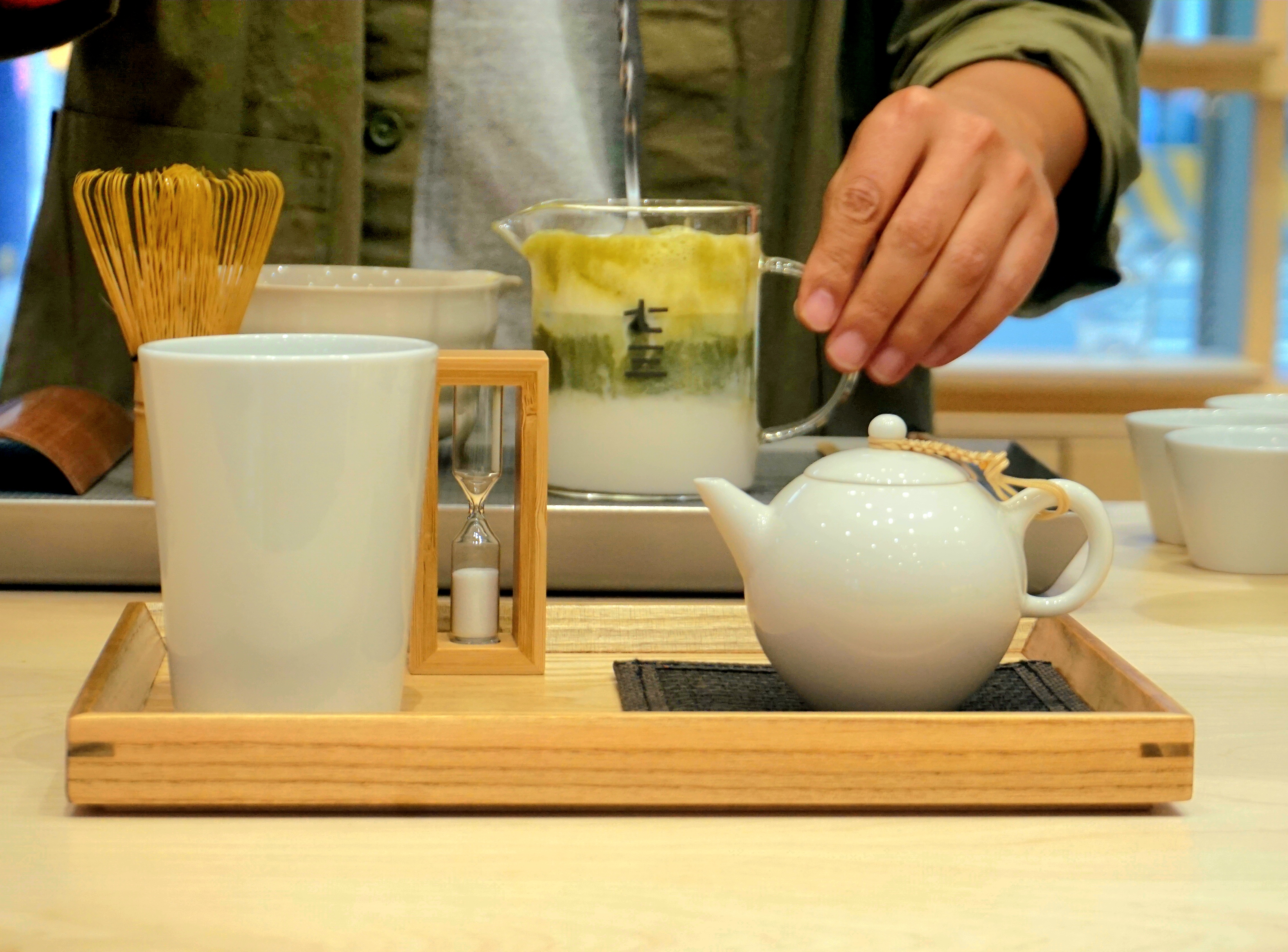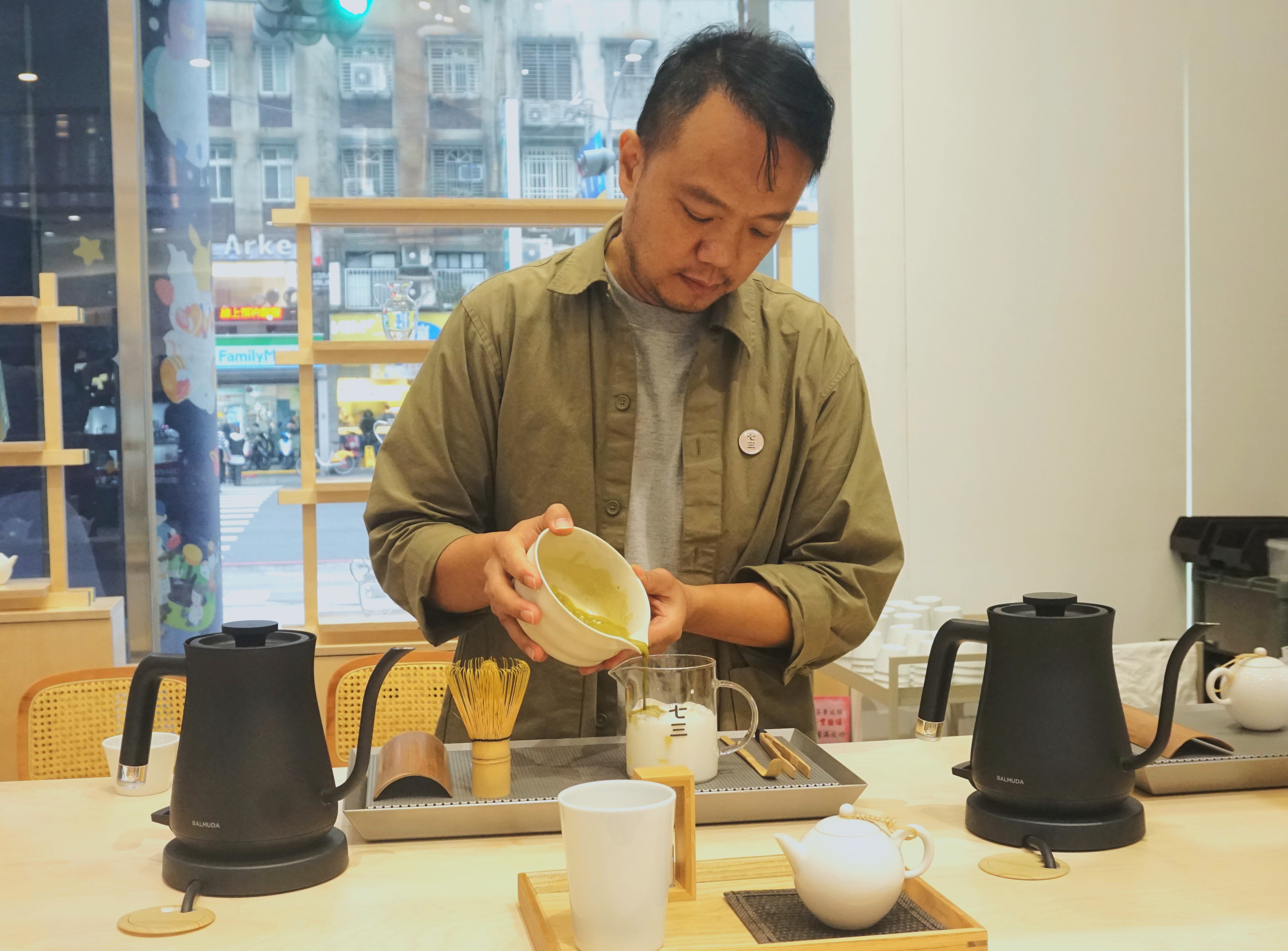 七三茶堂創辦人Sean現場調製茶拿鐵調飲。