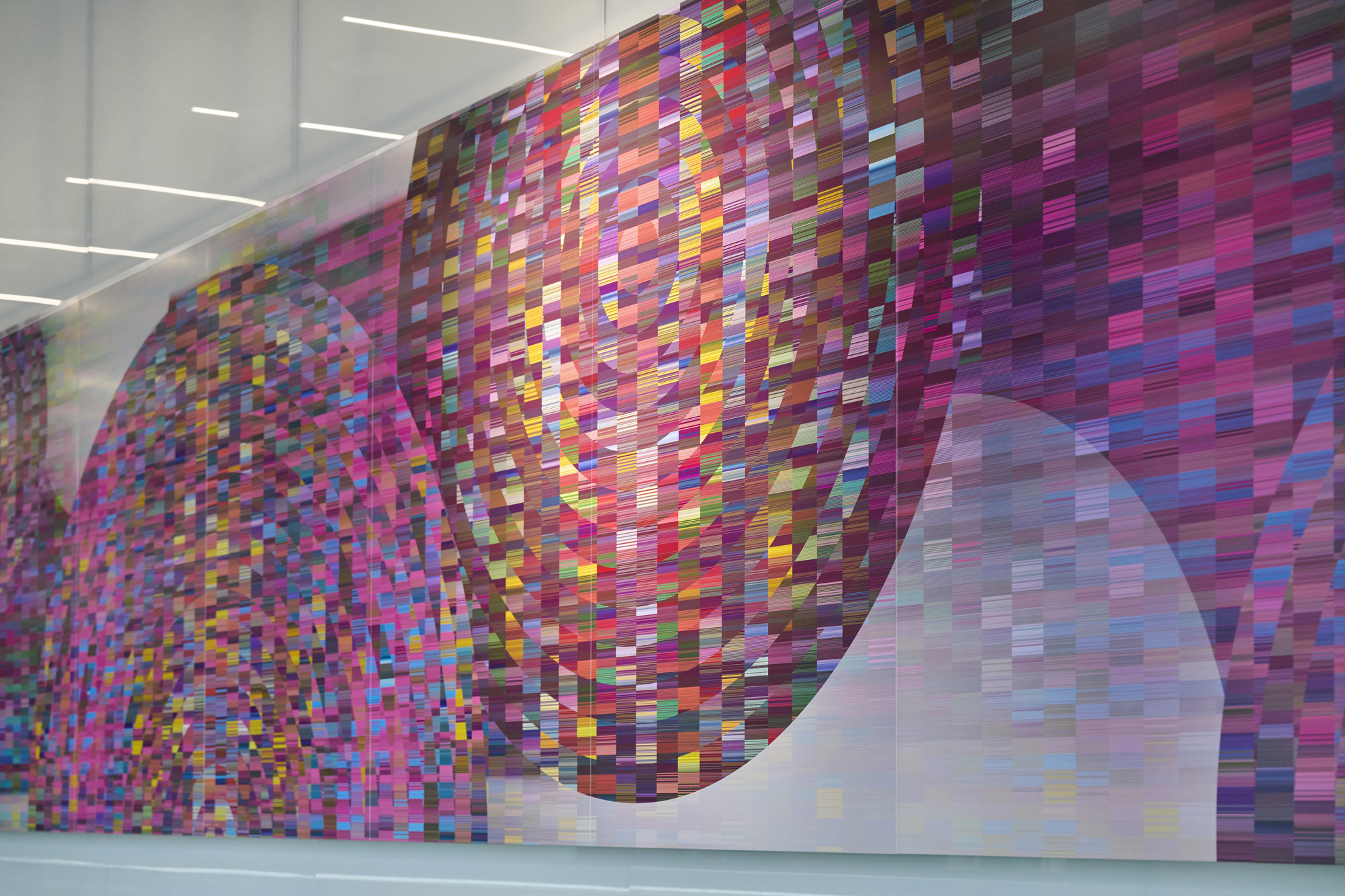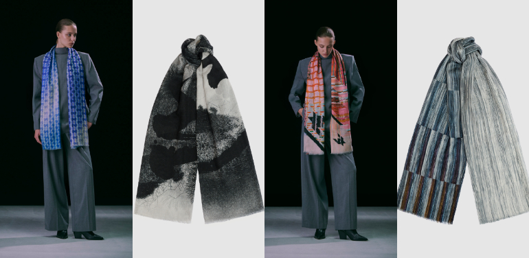創作過程中,團隊結合舞者動作捕捉、數據運算與數位影像技術,生成不對稱且不重複的圖像結構,使每一件作品都呈現獨特的節奏與韻律。十一件精梳羊毛圍巾在柔軟與細節之間取得平衡,色彩鮮明卻不失深度,延續公共藝術原有的島嶼精神。〈島嶼寓言〉系列亦於 2025 年榮獲 IDA 國際設計獎金獎,肯定其在藝術、設計與工藝之間所開啟的創新路徑。