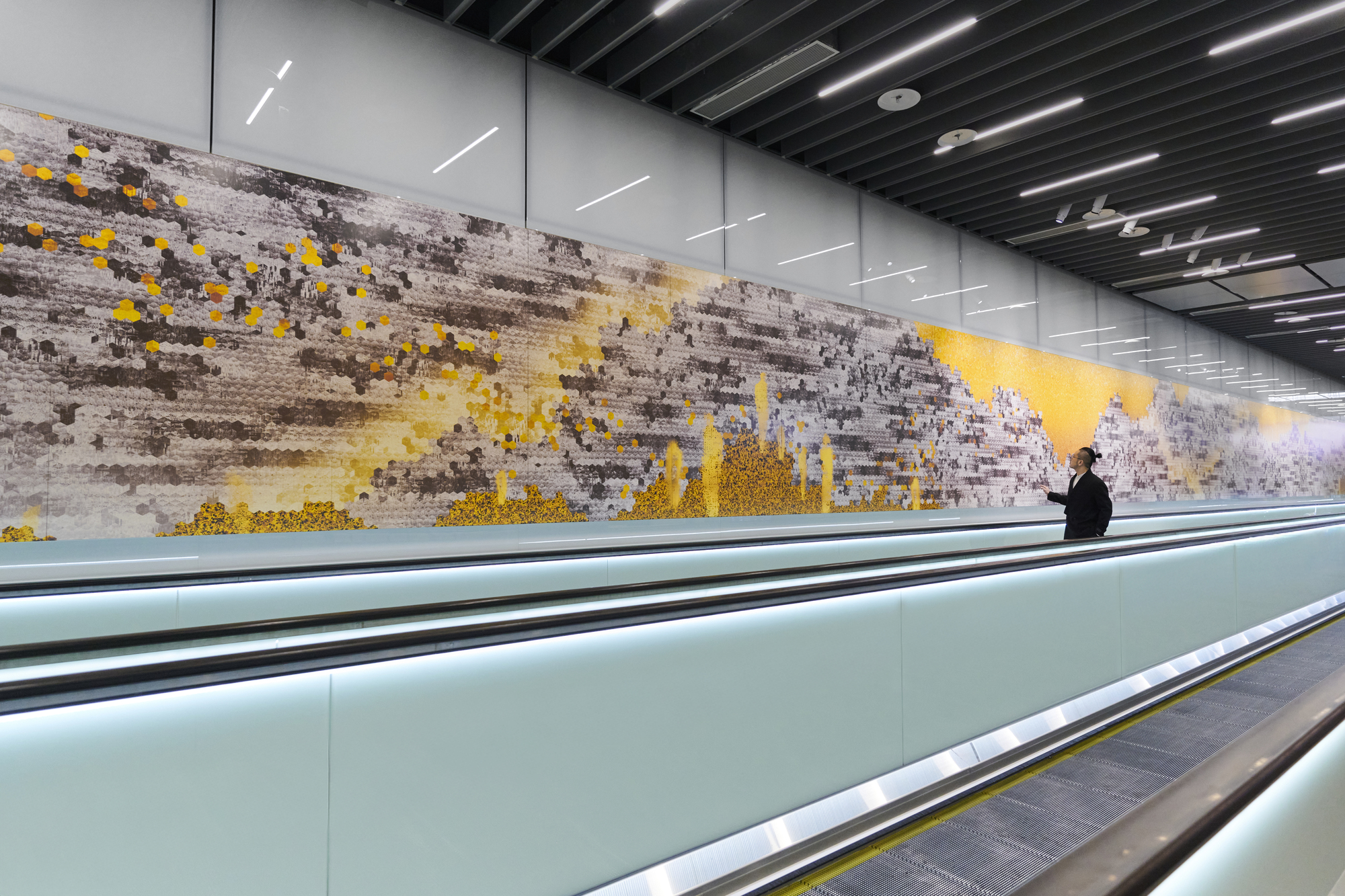 作為一個高度流動的公共空間,機場的觀看經驗不斷在行走、等待與停駐之間切換。《國境之門.島嶼寓言》特別回應這樣的特性,以全幅尺度呼應建築與動線設計,透過細節密度與層次變化,讓作品在不同距離、角度與速度下,展現截然不同的閱讀方式。無論是匆匆而過的旅客,或在候機區短暫停留的人們,都能在畫面中找到屬於自己的觀看節奏。這件作品不僅是一段視覺風景,更成為一場與來自各國旅客之間的跨文化對話。