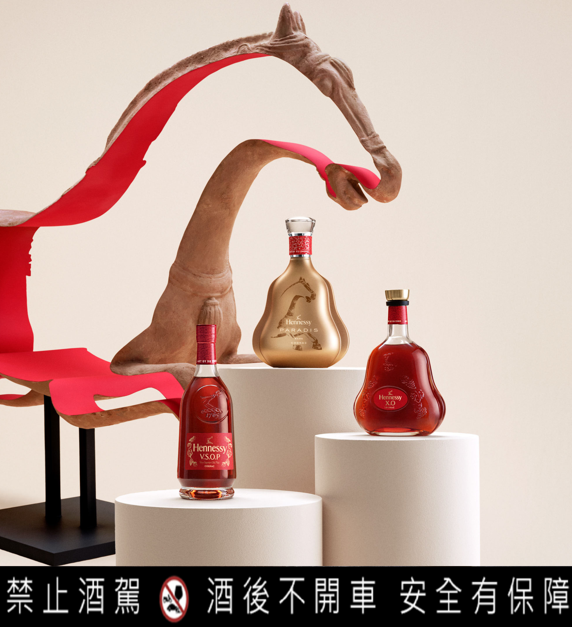 若要說到與眾不同,軒尼詩這次玩的「雕塑感線條」讓人驚豔。駿馬身影在瓶身上流動,充滿東方哲學自由包容的氣質。VSOP、XO、百樂廷各有表情,尤其百樂廷瓶口「馬紋」裝飾配上紅色流線外盒,喜氣中帶著奢華。設計採用優雅留白,讓每個人都能從自己的角度解讀這些線條──就像品嚐干邑,每個人喝出的層次也都不同。
