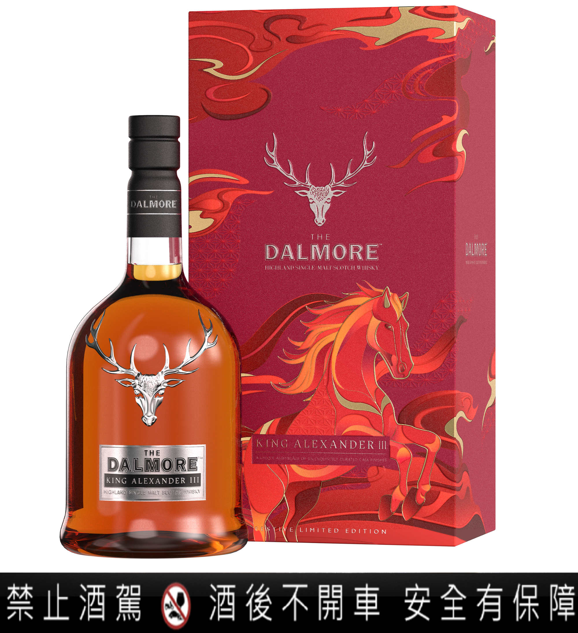 Dalmore大摩 大摩把自家招牌雄鹿和馬年駿馬擺在一起,象徵時間與榮耀的雙重力量。亞歷山大三世是全球唯一用六款橡木桶熟成的酒款(還記得六六大順嗎?),今年的「馬到盈福」限定版禮盒,以金銅色調和壓紋工藝呈現,沉穩中帶著蓄勢待發的動能。亞歷山大三世是大摩的高端代表,添上過年該有的喜氣,絕對是行家等級的選擇。 | ![]() |