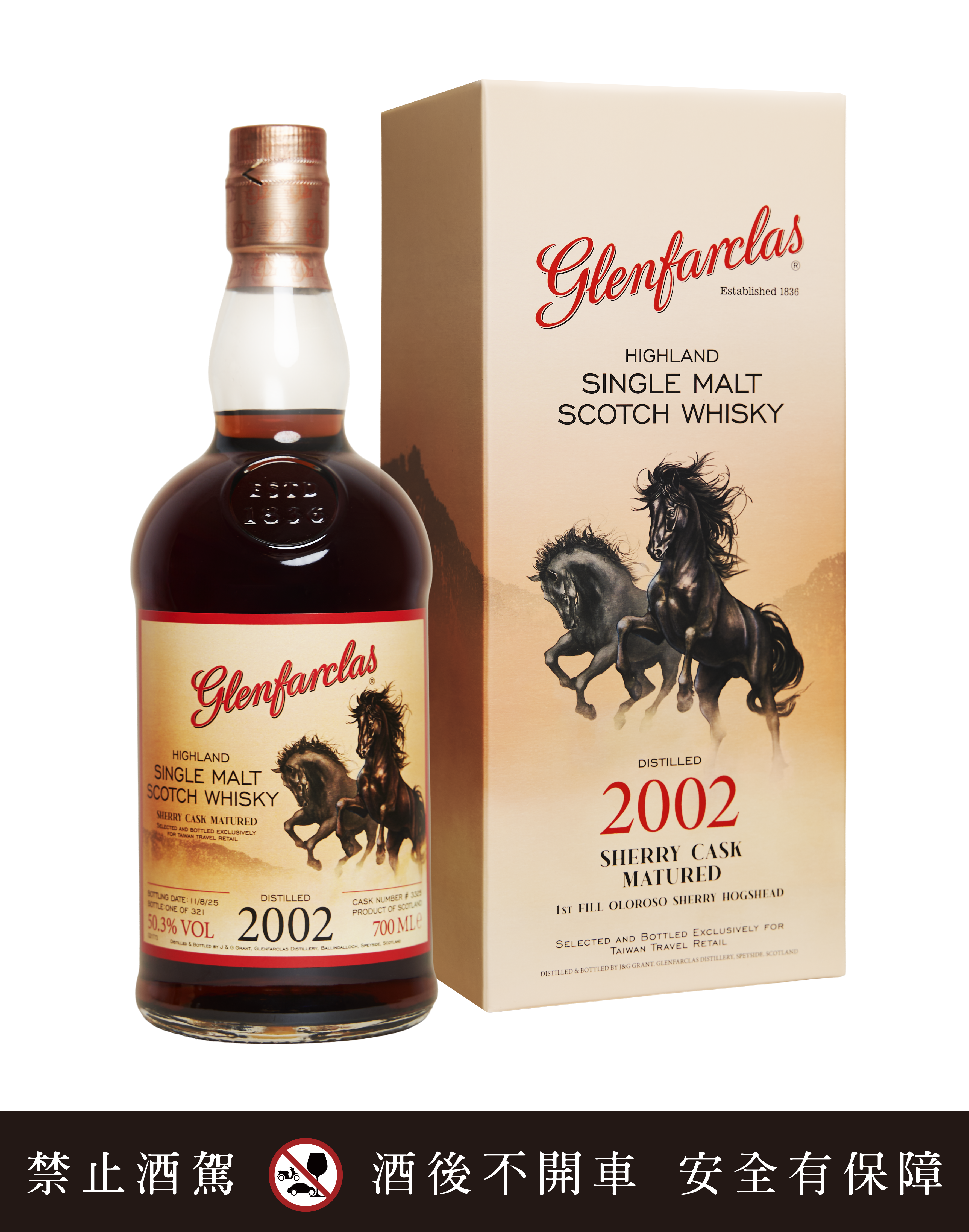 ![]() | Glenfarclas格蘭花格 格蘭花格「踏焰奔午」馬年新年典藏,選用2002年馬年入桶的雪莉桶,熟成23年後於2026年馬年上市,時間算得十分精準,以火焰與傳承回應馬年精神。禮盒設計把「火馬」概念發揮到極致:火焰紋理、駿馬剪影,呼應品牌堅持的直火蒸餾工藝。當火焰直燒蒸餾器底部,原酒風格就像烈馬奔騰,奔放直接、毫不掩飾。 |