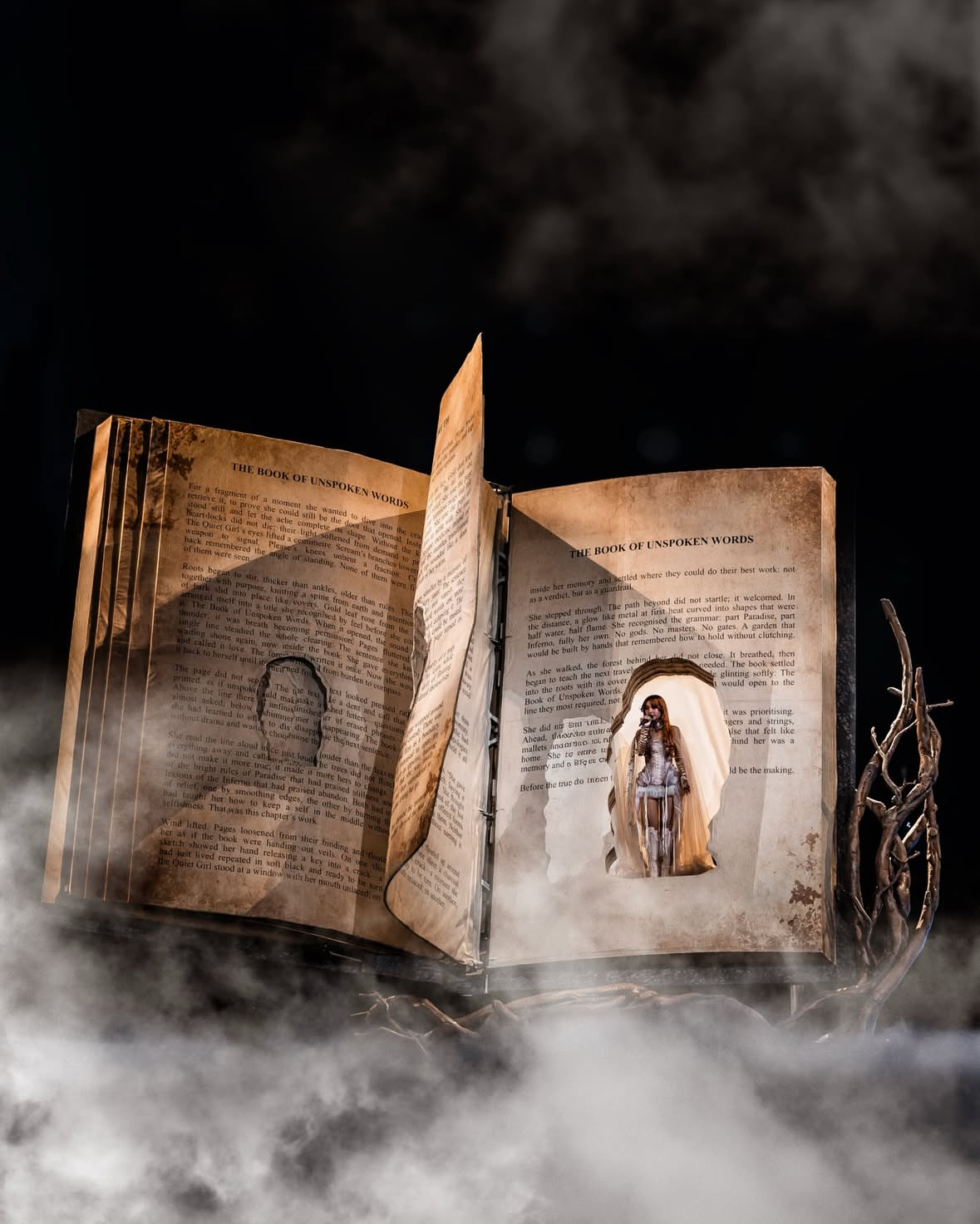 SYL:(笑)點我們玩得很過癮!其實現場那些詩意文字,不是要大家像讀小說一樣去逐字閱讀,它們更像是視覺上的「指南針」。你想喔,這場秀沒有傳統的旁白或導覽,我們是想純粹用「畫面」去講故事。那些詩句被轉化成了影像的節奏和氛圍,取代了文字。故意留下這種「開放性」,就是想讓每個觀眾都有自己的解讀。對於這段關於「自我發現」的旅程,我們覺得「感受」絕對比「讀懂」更重要。