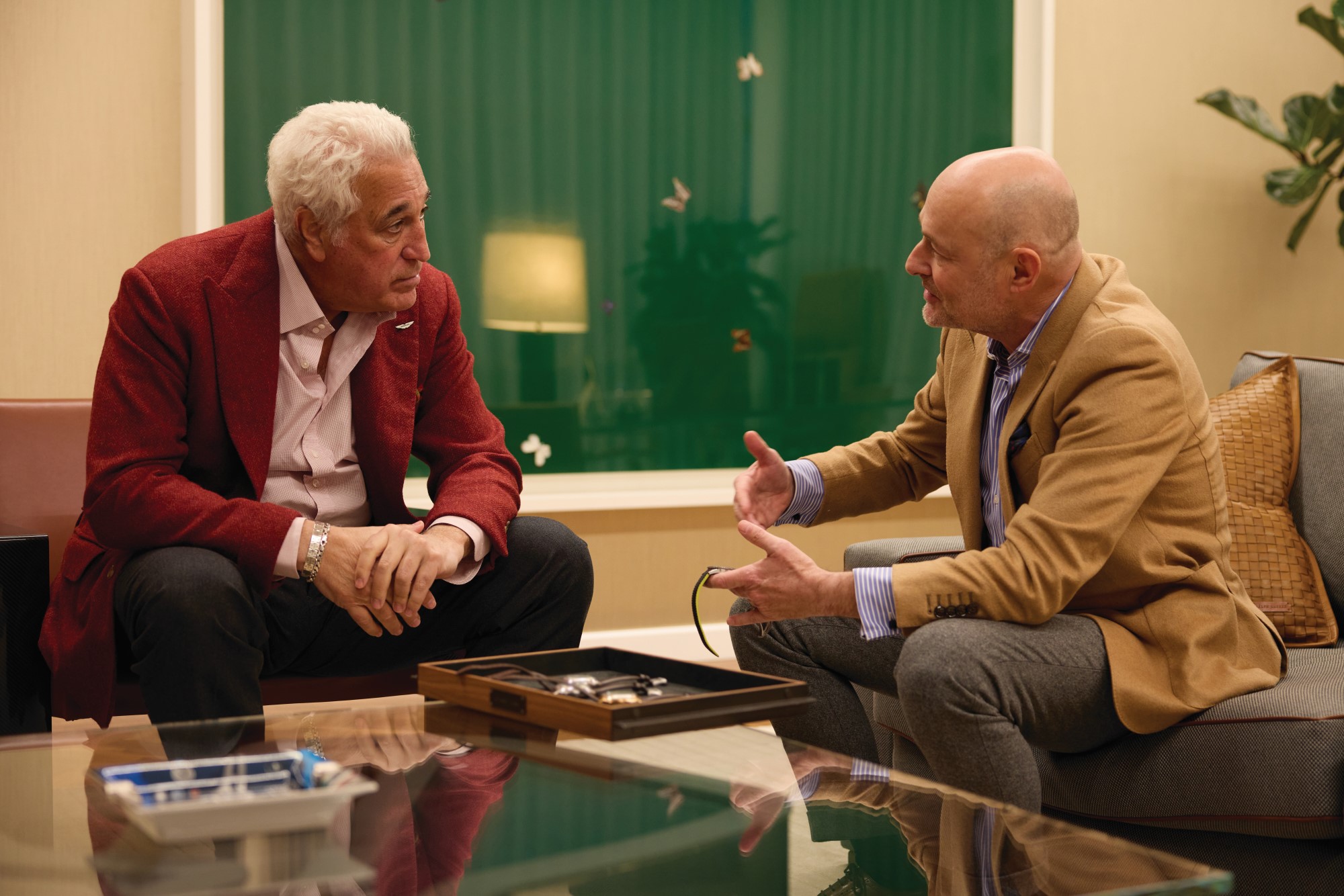 Aston Martin暨Aston Martin Aramco Formula One™ Team執行主席勞倫斯斯特羅爾(左)與Breitling執行長喬治·科恩合影。