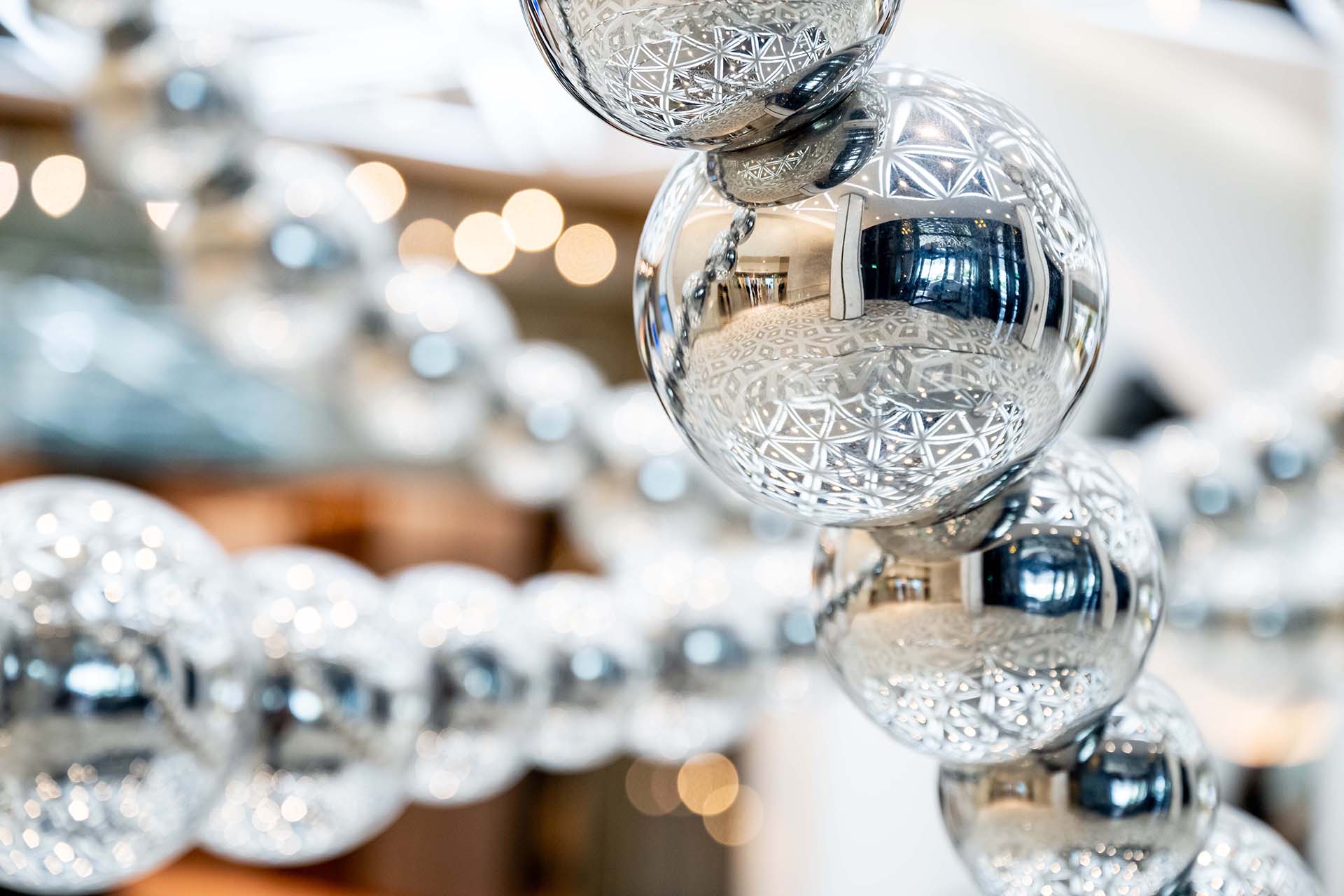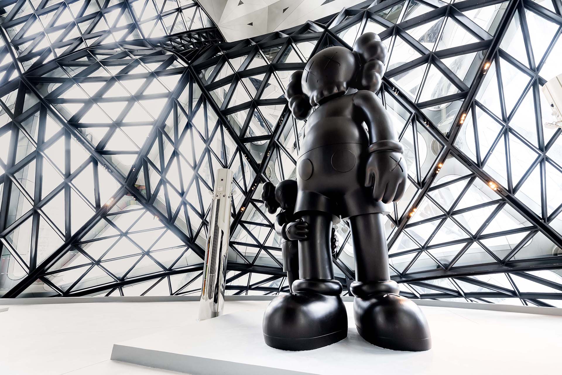 而新濠天地整座建築的內部,同時是一座流動美術館:村上隆以鉑金色玻璃馬賽克覆滿整面牆;KAWS以非洲硬木雕出兩米高的擁抱人形;Mr. Doodle的塗鴉線條佔滿整個白色空間。各式各樣、東西方兼容並蓄的藝術作品,就這樣實實在在地出現在你的四周。你上次覺得「自己站在藝術裡」是什麼時候?我說的不是在藝展中欣賞展品,而是真的與藝術品「共活」──搭電梯、吃飯、穿梭廊道,在每一個細節中都感受到藝術的存在。這種震撼,其實非常難得。