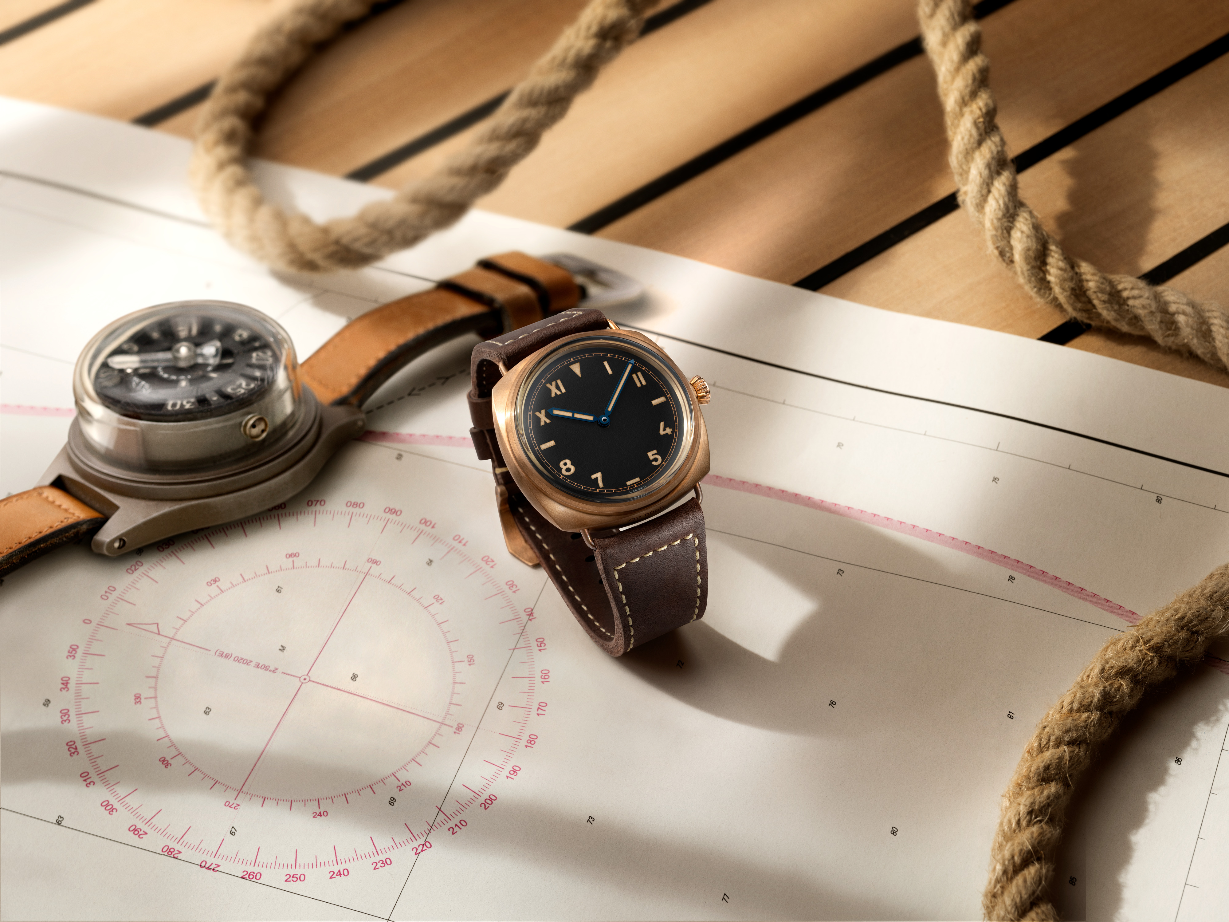 而PAM01729搭配47毫米青銅錶殼,將隨著時間產生獨一無二的銅綠。這種隨歲月演化而成的獨特質感極具魅力,依據每位佩戴者的生活經歷,青銅將隨之氧化,形塑出專屬樣貌。腕錶最初呈現溫潤的紅金色澤,經過與空氣、濕度、高溫與摩擦等外在因素自然作用,逐漸形成銅綠。這層天然生成的保護膜不會改變材料特性,卻能在保護材質的同時,賦予腕錶鮮明的個性,完美呼應以時光之旅為主題的體驗行程,陪伴藏家回顧品牌歷史,並將珍貴回憶封存於青銅之中。