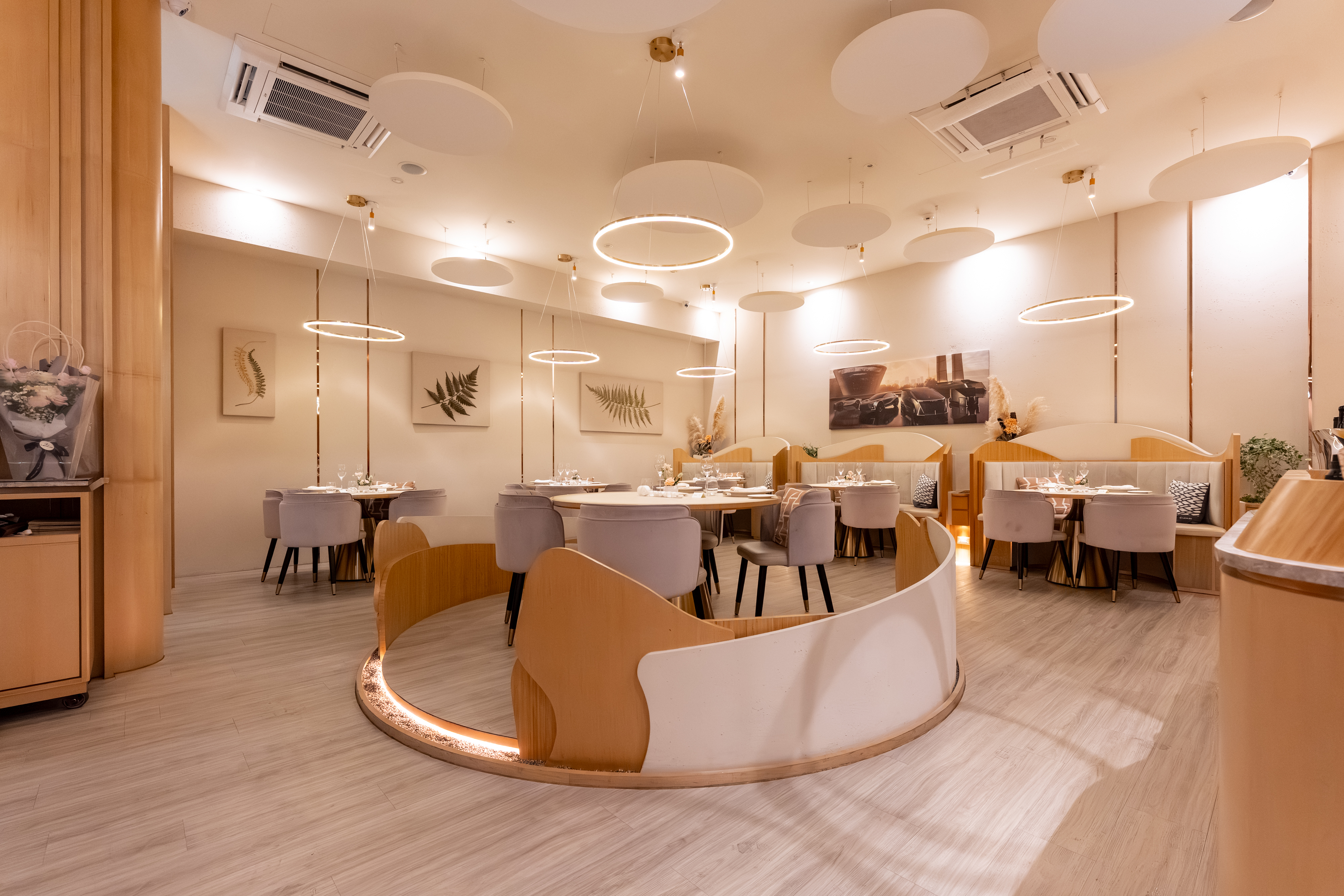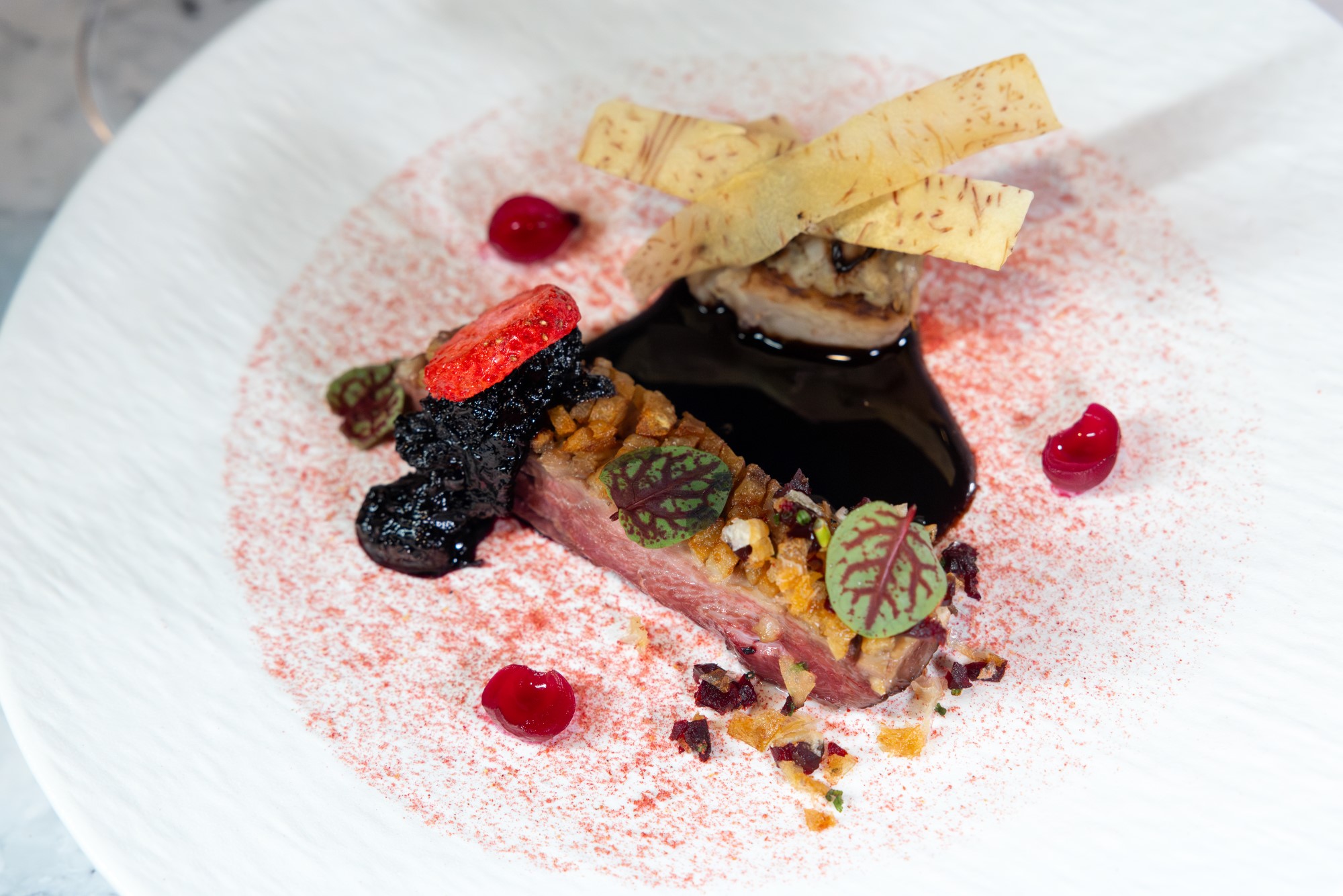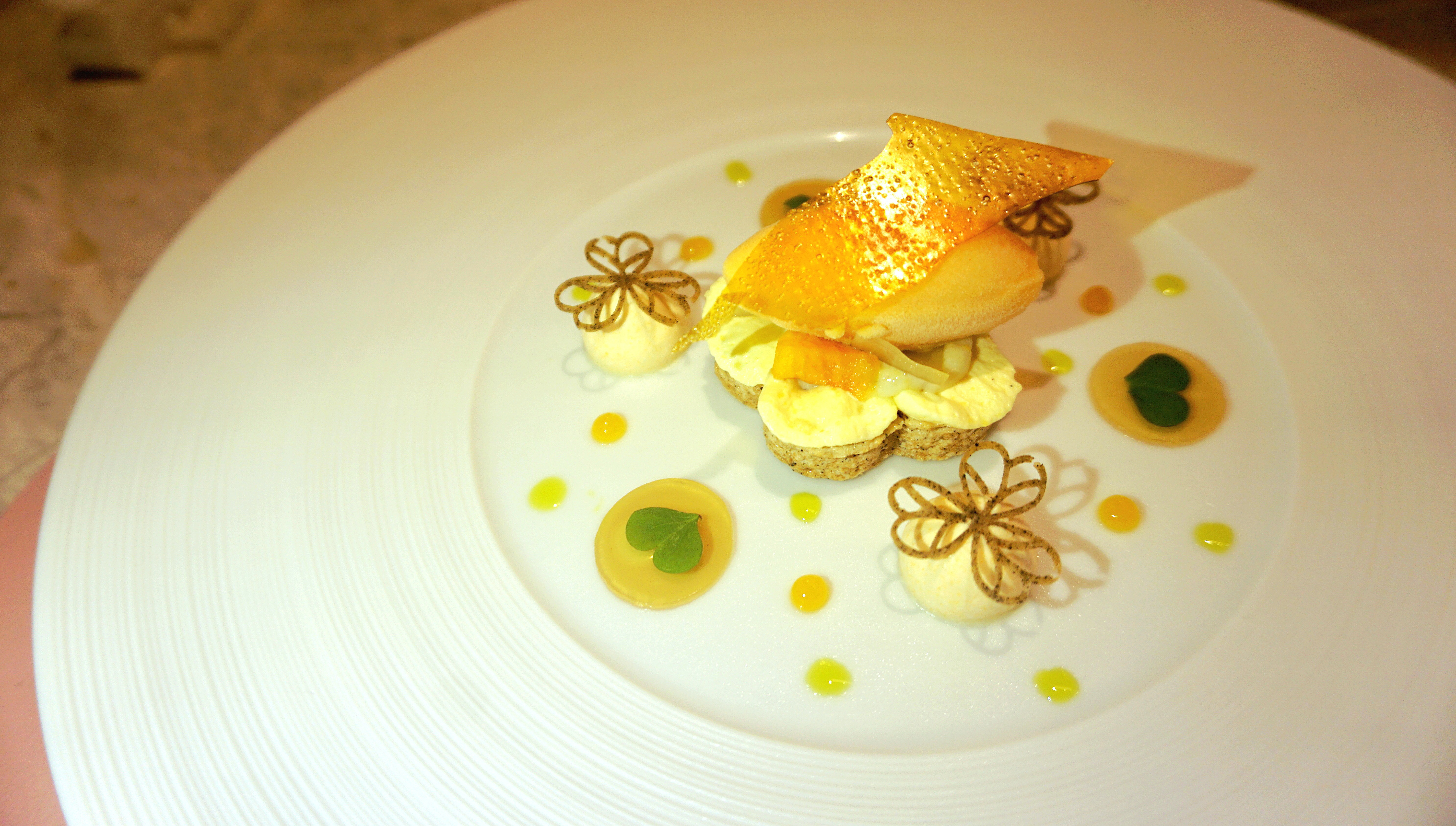 隨著餐序推進,料理逐漸轉入更為深厚的風味層次,主餐「珍饈淬鍊」提供炭烤菲力牛排與乾式熟成玉露鴨兩種選擇,分別展現飽滿肉香與細緻果香風味。整體套餐亦特別規劃搭餐飲品,透過精選酒款與無酒精飲品的安排,使杯中風味與料理相互呼應,讓整體用餐體驗更加完整,最後以多數人對高雄的記憶「木瓜牛奶」為靈感發展主甜點「港都甘韻」,透過木瓜sorbet 的清爽果香與細緻奶香風味,搭配小米牛奶甜粥帶來溫潤口感,並以橙花香氣點綴,讓整體甜點在清爽與柔和甜香之間取得平衡,為這場春季餐桌畫下優雅句點。