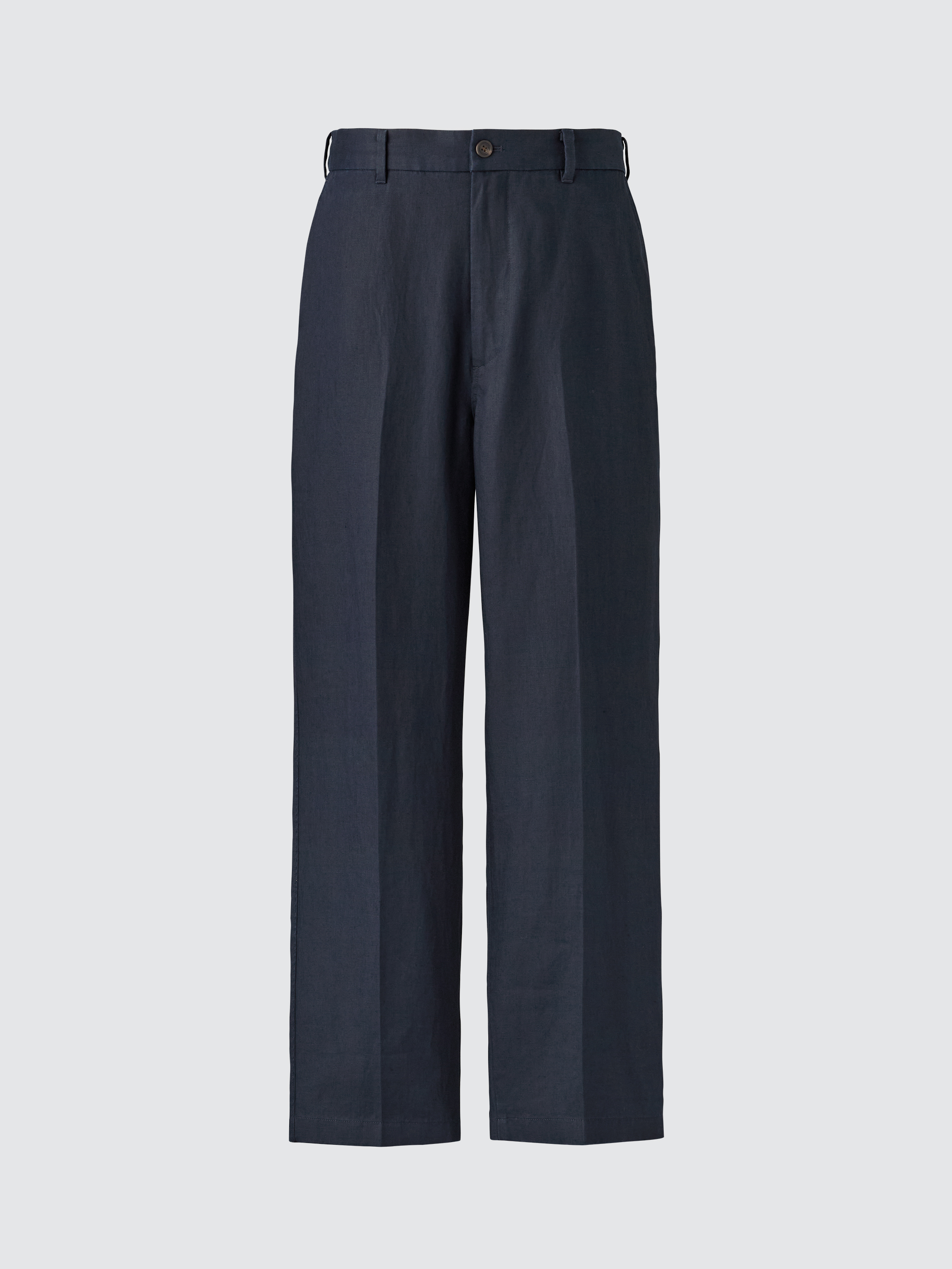 過往亞麻總被貼上「海島度假」的標籤,彷彿只存在於地中海的陽光下。但在 UNIQLO : C 膠囊系列首度亮相的男裝作品中,我們看到了更多結構性的進化。Clare Waight Keller 巧妙地將亞麻融入硬挺的工裝剪裁,打破了亞麻「軟塌」的既定印象。其中最受矚目的「特級亞麻襯衫式外套」,以俐落的箱型剪裁賦予亞麻鮮明的輪廓感,讓這項材質不再侷限於沙灘漫步。即便是在正式的商務餐敘或都會移動中,它依然能提供如西裝般的份量感,卻同時保有物理上的絕對涼爽。