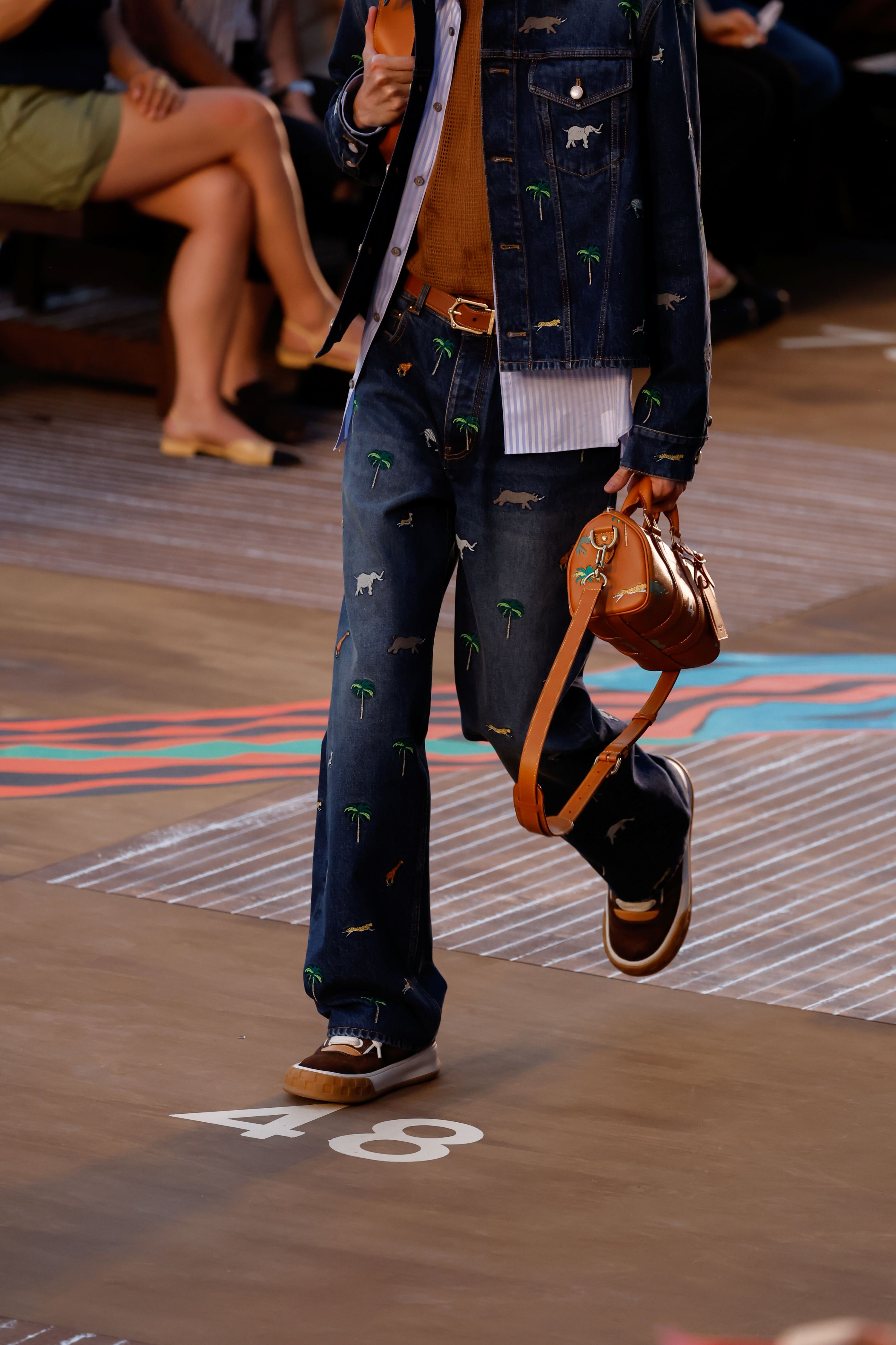 LV Tilted系列的面料選擇,如同一本當代風格百科全書。從帶著粗獷呼吸感的仿舊丹寧、觸感細膩的彩色小牛麂皮,到充滿建築感的編織Damier帆布,每一種材質都在講述截然不同的故事。